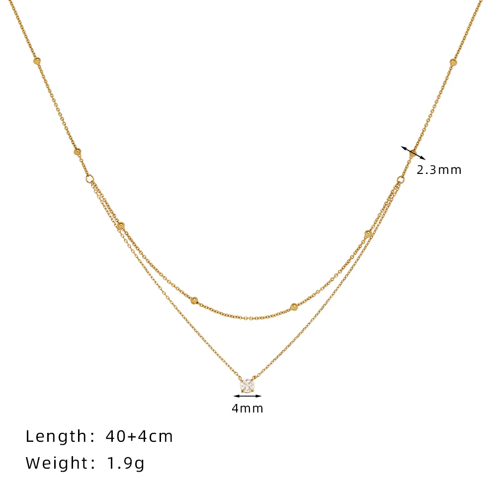 时尚18k镀金不锈钢双层几何吊坠项链链单锆石派对散装时尚