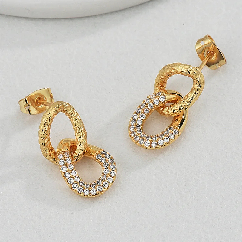/ 2024 Caitlyn Luxury Statement Double Hoop Earrings Trendy Zircon Number Geometric Shape Fashion Jewelry Gift Made of Brass