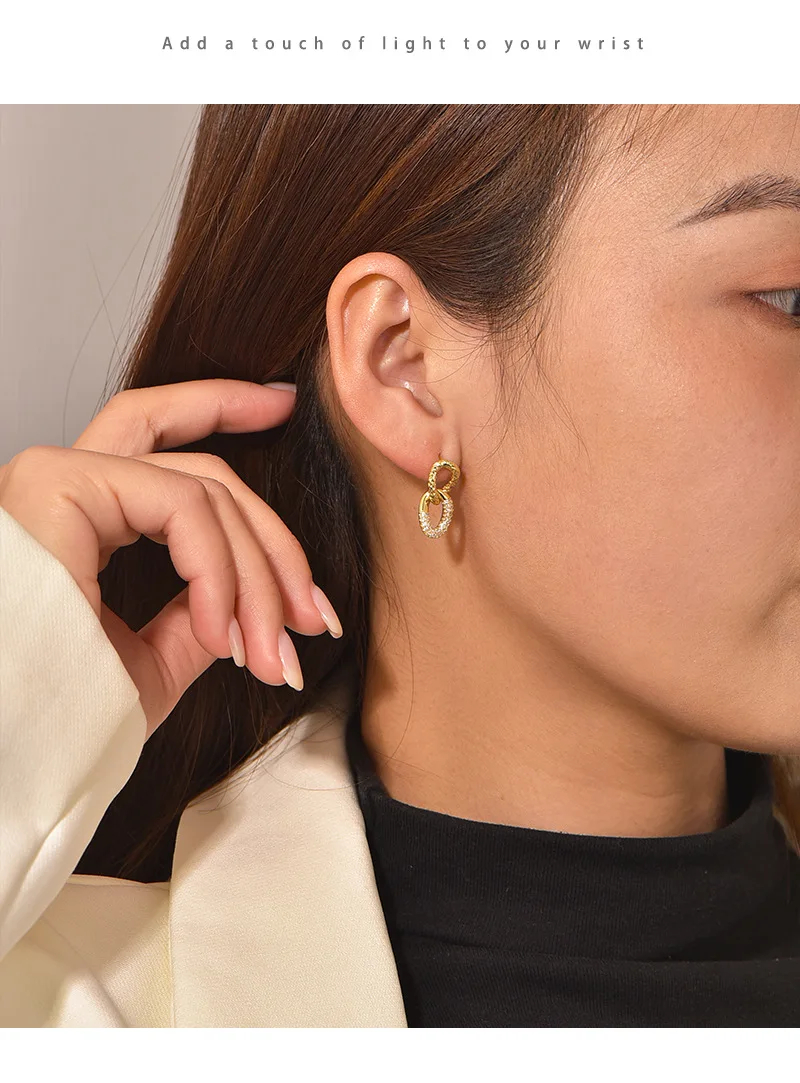 2024 Luxury Copper Geometrical Double Layer Circle Crystal Stud Earrings Trendy Brass Drop Zircon Gold Plated Main Earrings
