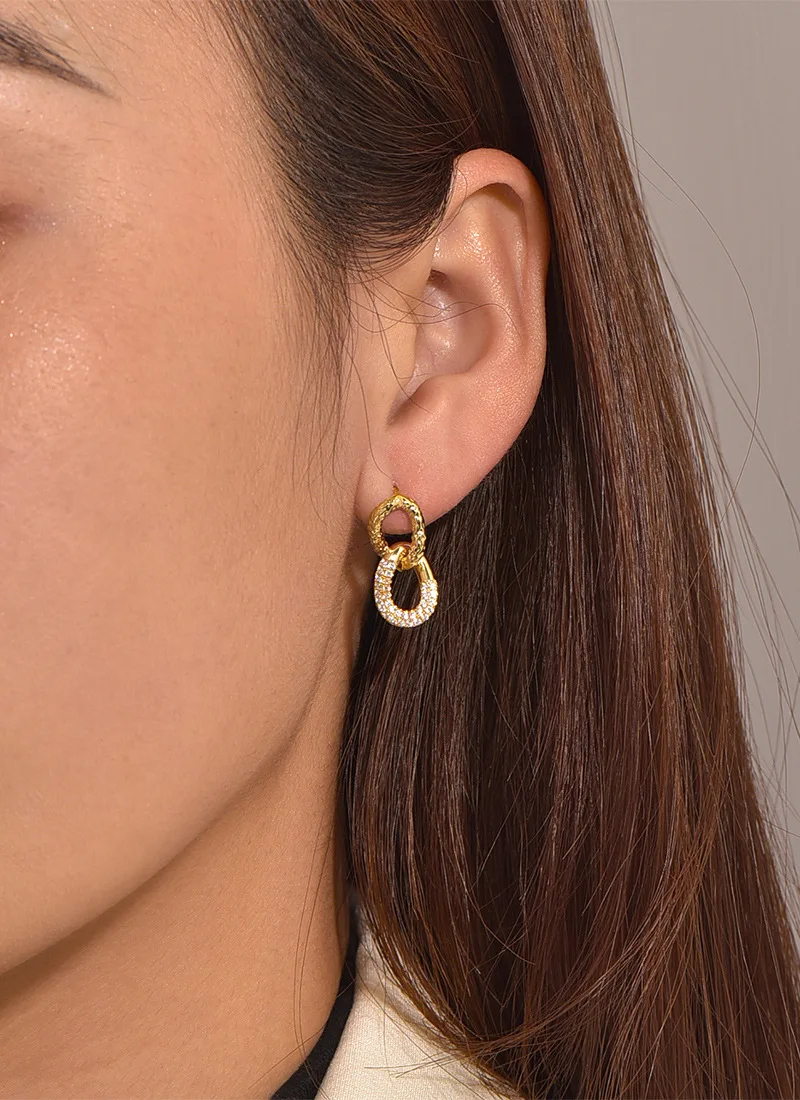 2024 Luxury Gold-Plated Copper Double Layer Geometrical Circle Crystal Stud Dangle Earrings Zircon Trendy Brass Jewelry Trendy
