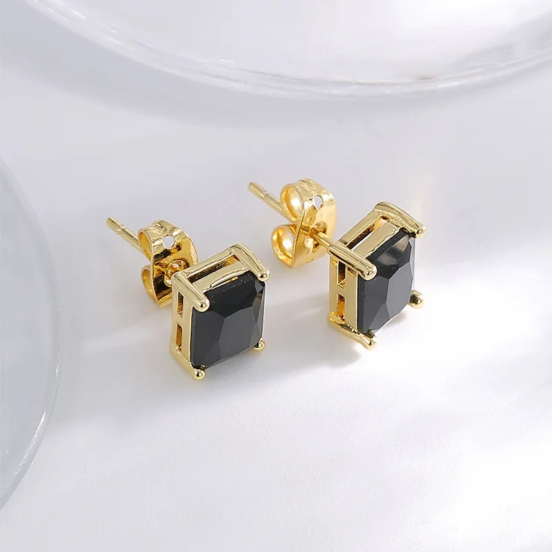 2024 Trendy 14K Gold Plated Fine Stud Earrings for Women Black Square Zircon Square Earrings