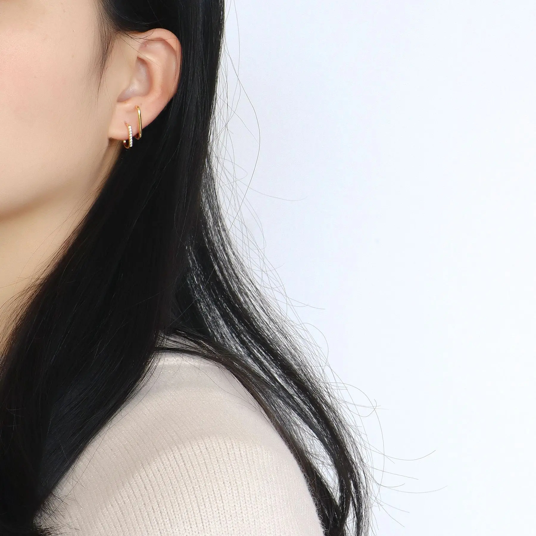 成为第一个“2024 Trendy Minimalist Geometric Design Brass Earrings Double Line Crystal Stud 14k Gold Plate Zircon Main for Anniversary Gifts” 的评价者