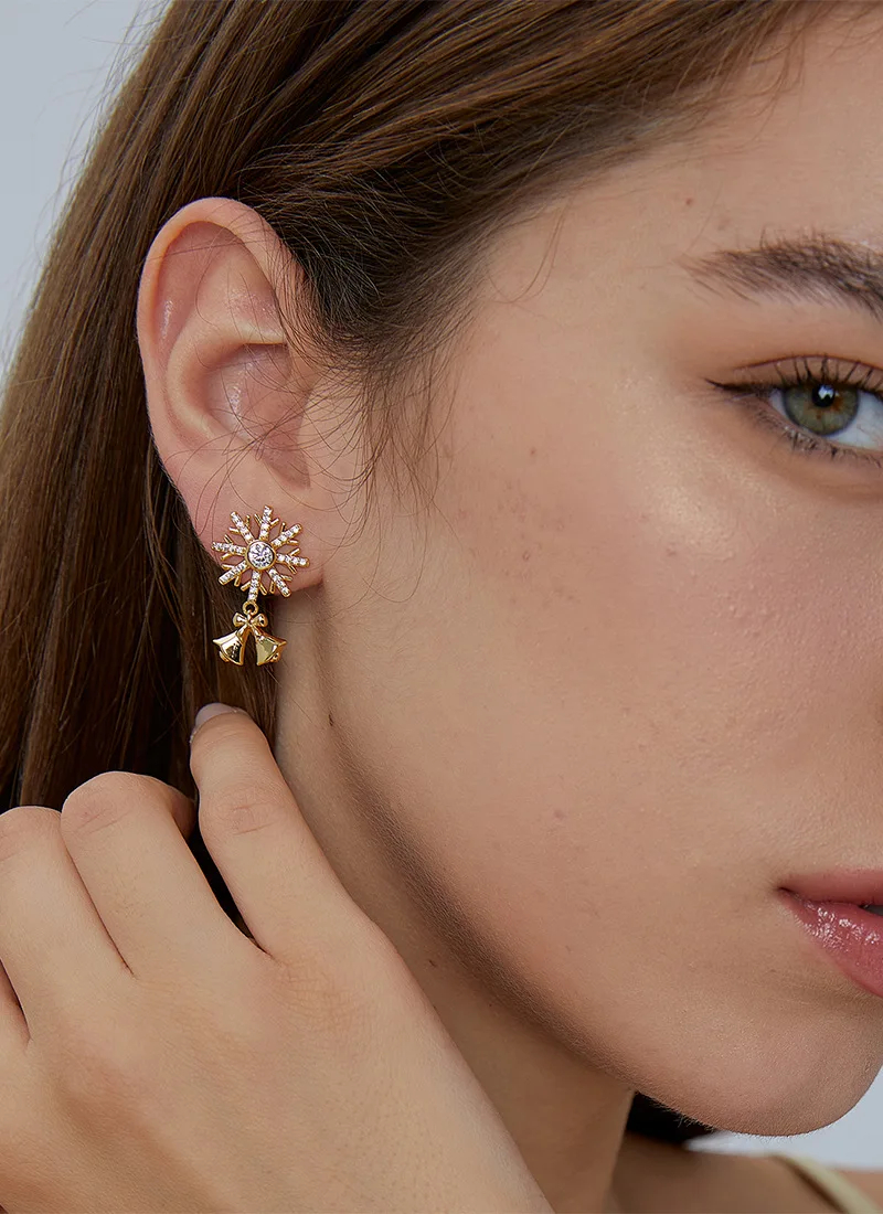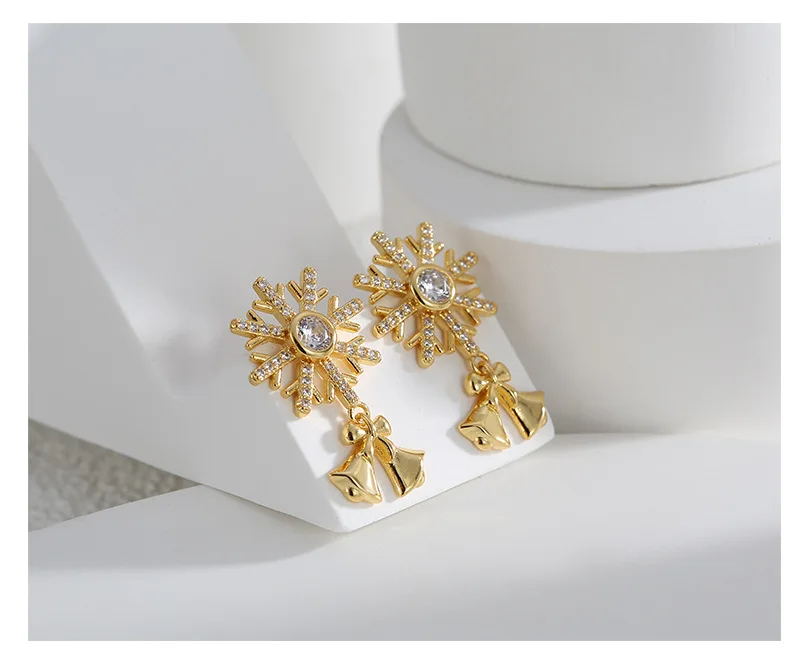 5A Zircon Stud Earrings Christmas Bell Design Unisex Religious Snowflake Drop Earrings Gold Plated Jewelry