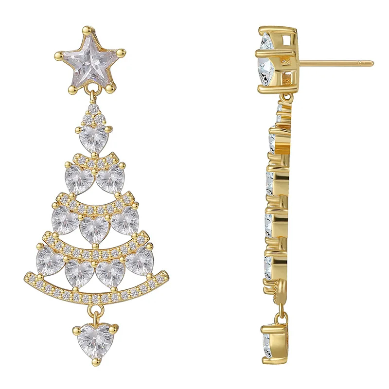 5A Zircon Stud Earrings Trendy Christmas Tree Design Gold Plated Copper Jewelry Fashionable Brass Stud Drop Earrings for Gift