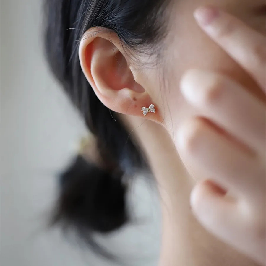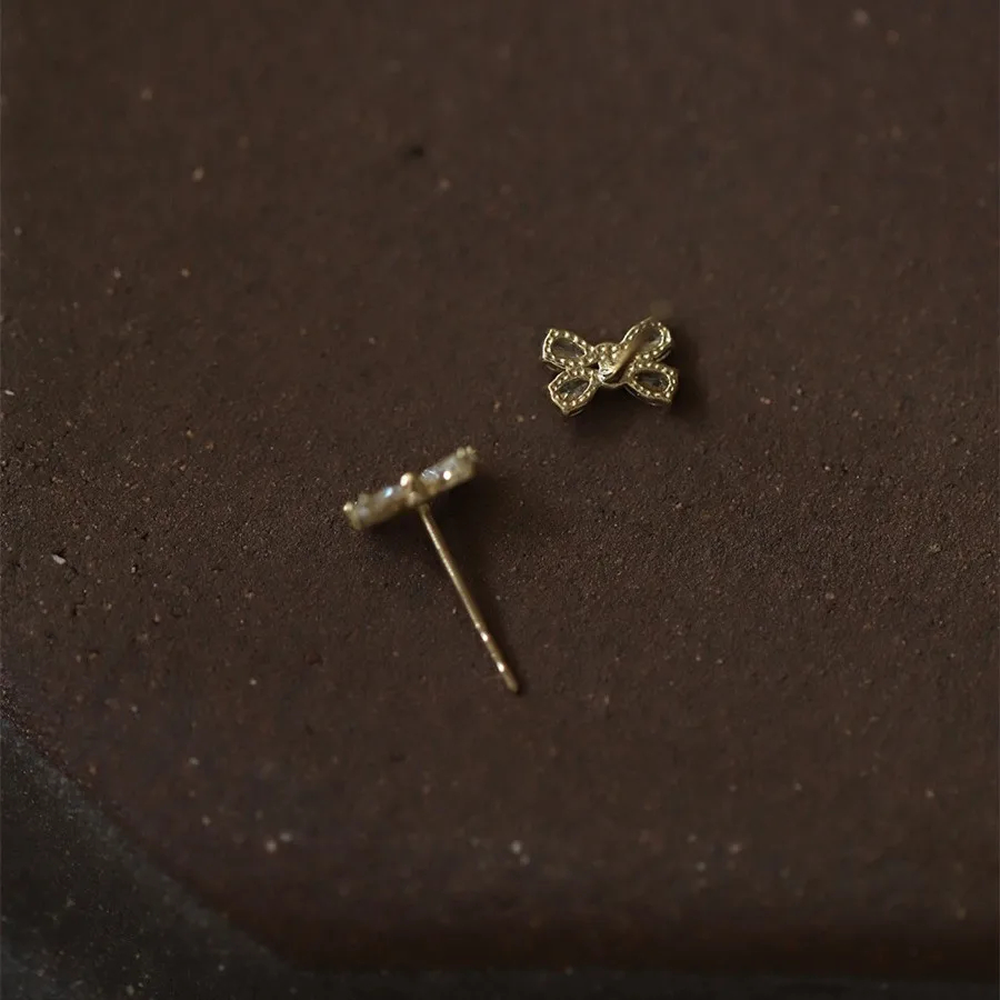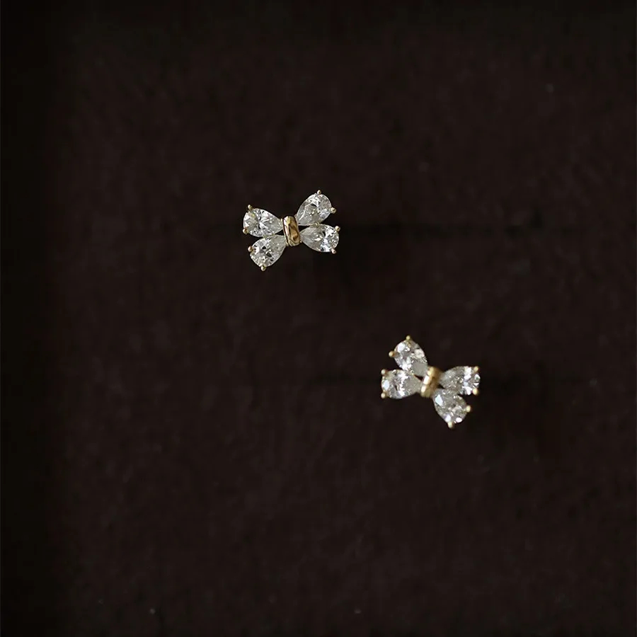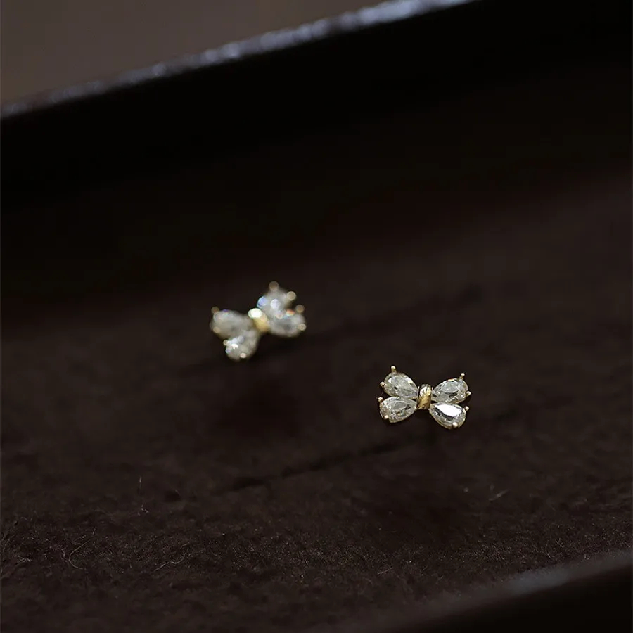 Elegant Style 14k Gold Plated Mini Bow Tie Design Zircon Stud Earrings S925 Sterling Silver Stud Earrings Ear Stud
