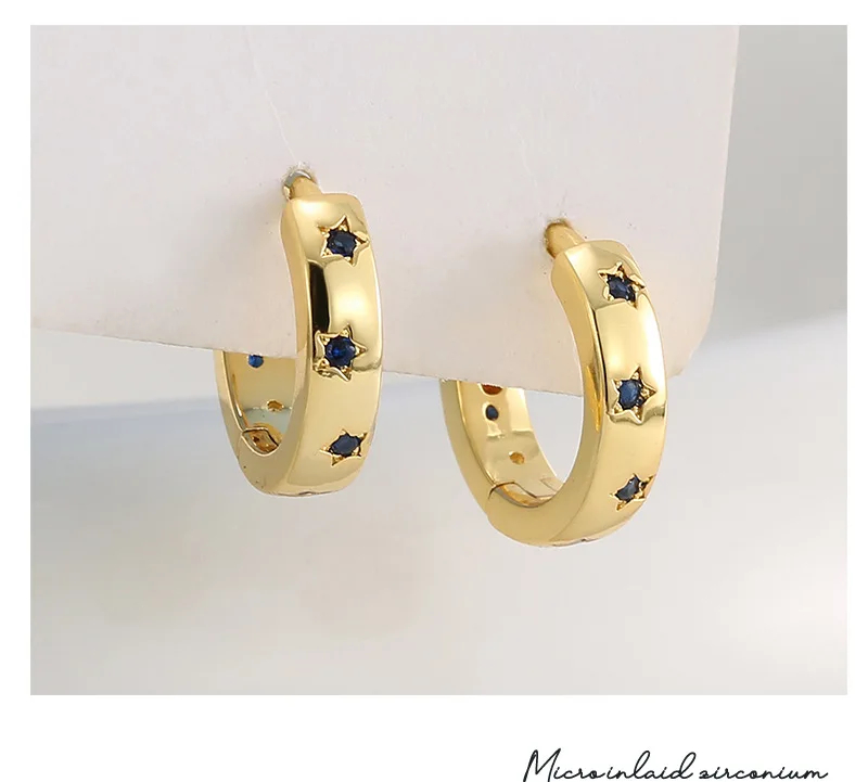 Hot Sale Trendy Gold-Plated Brass Mini Hoop Earrings Fashionable Silver Zircon Geometric Pattern Diamond Pearl Unique Star