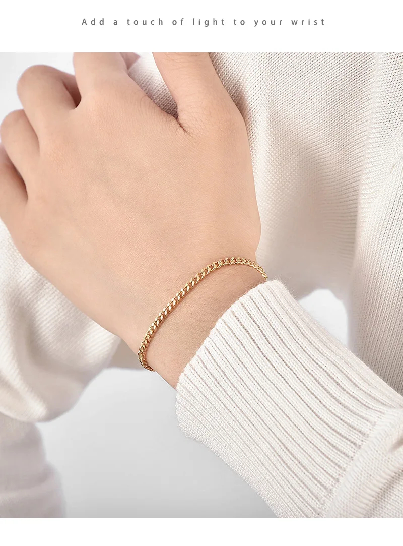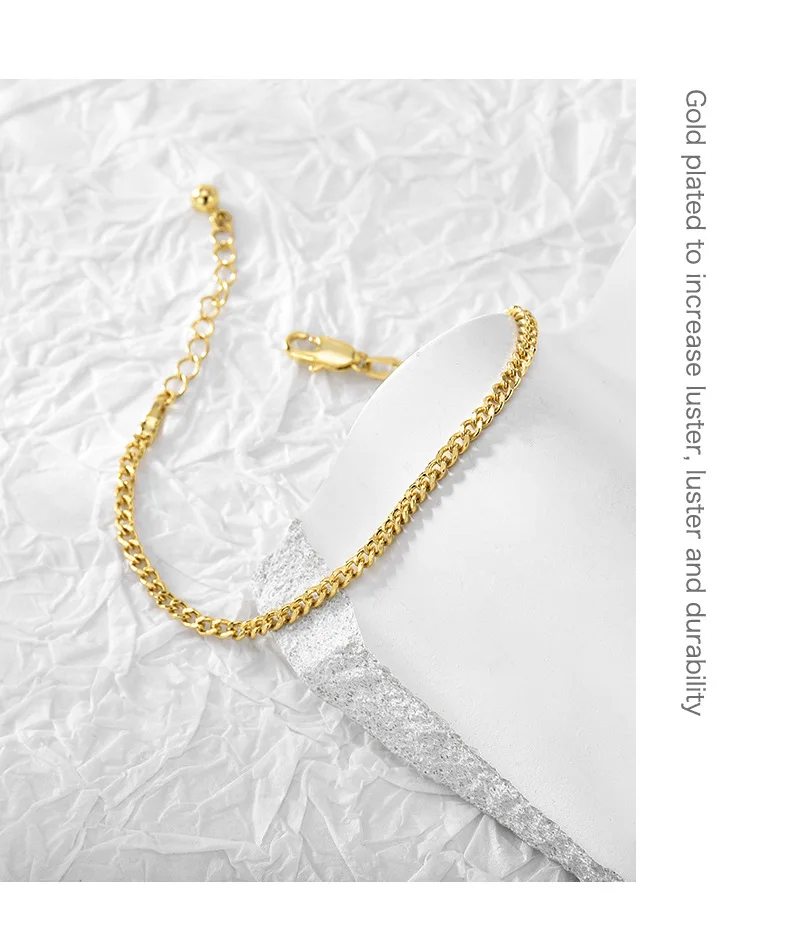 Hot Sale Unisex 18K Gold Plated Geometric Shape Cuban Bracelet Trendy Fashion Jewelry in Thin Copper Alloy for Anniversaries