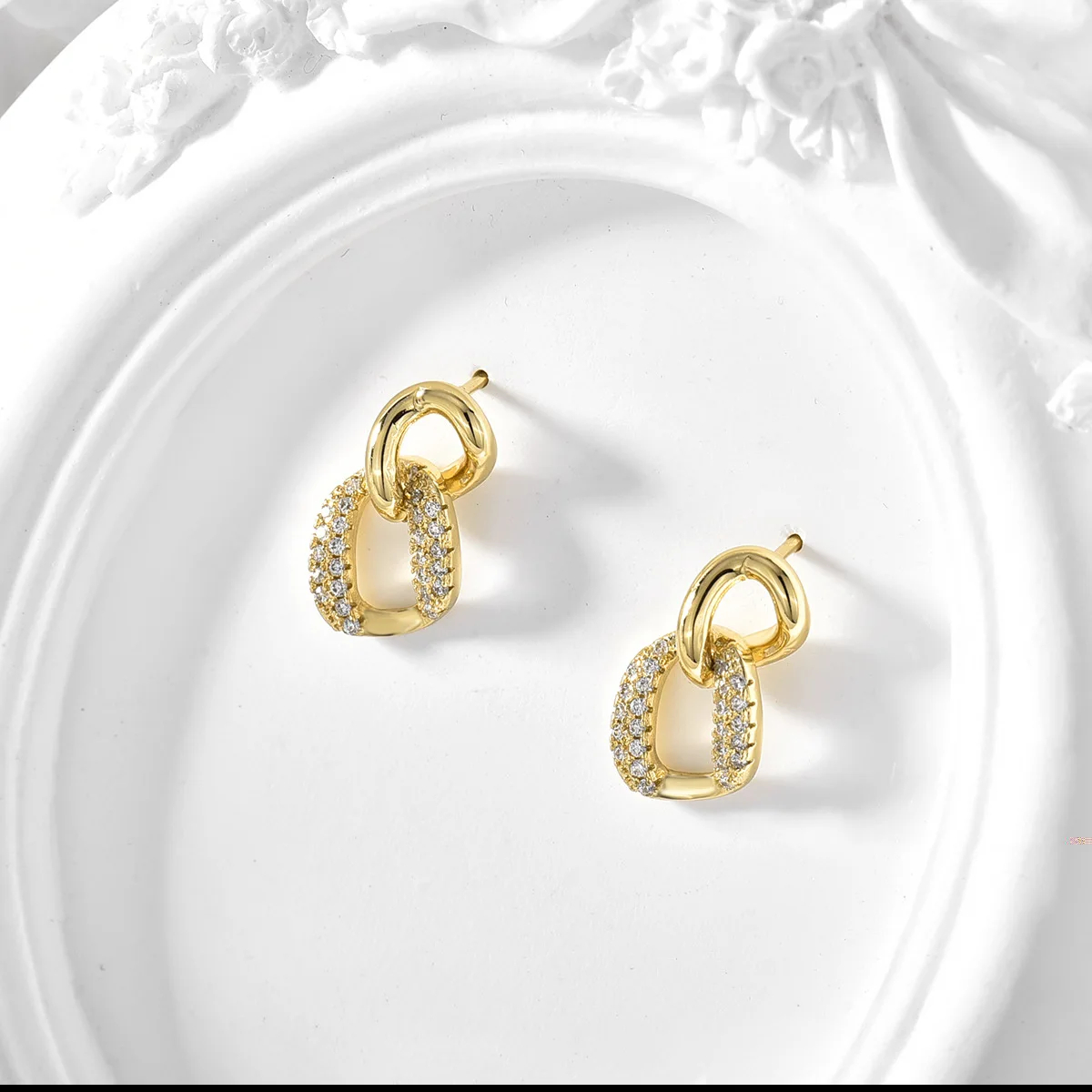 成为第一个“Luxury 2024 Unisex 5A Cubic Zircon Double Layer Geometric Circle Stud Drop Earrings Trendy Brass Perfect Gift for Women” 的评价者