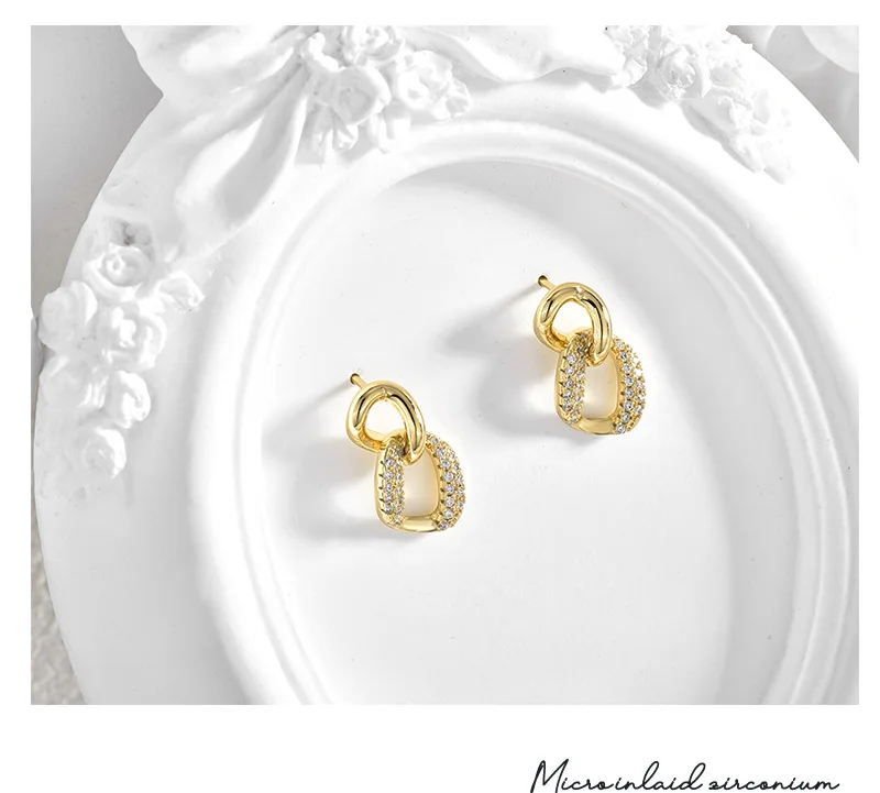 Luxury 2024 Unisex 5A Cubic Zircon Double Layer Geometric Circle Stud Drop Earrings Trendy Brass Perfect Gift for Women