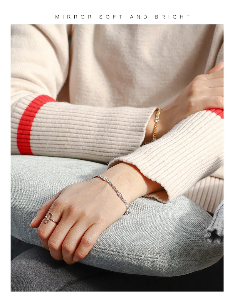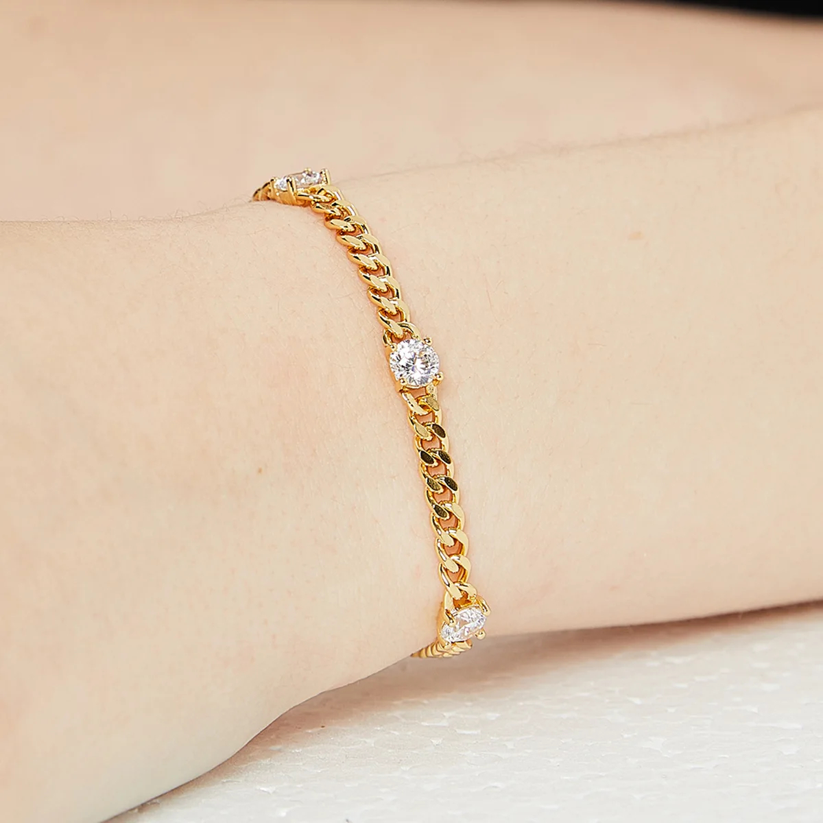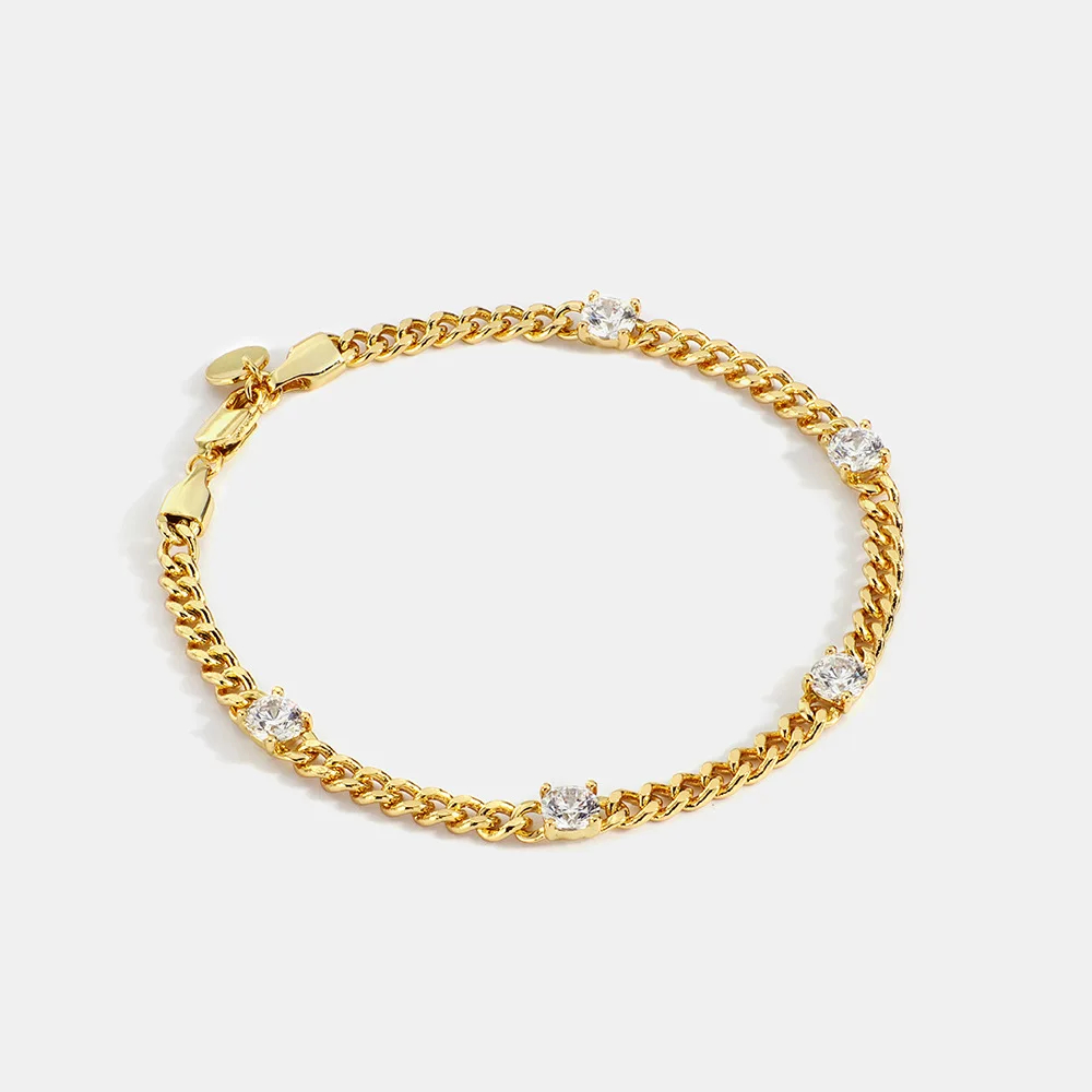 New Arrival Trendy Gold-Plated Brass Bracelet with Geometric Zircon Charm Minimalist Design Tiny Cuban Chain Rhodium Plated