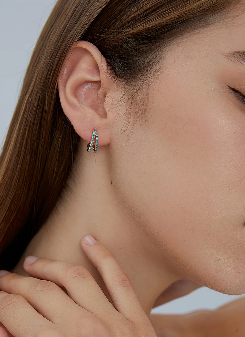 Trendy 18K Gold Double Layer Brass Hoop Earrings Fashion Jewelry Micro Inserts Turquoise Main Material Alloy Main Zircon Gift